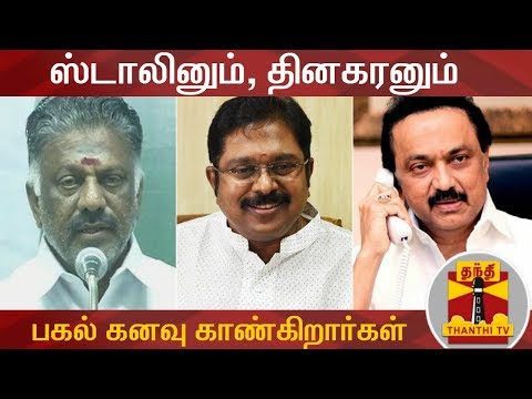 #MKStalin #TTVDhinakaran #OPanneerselvam #MLAsDisqualificationCase ஸ்டாலினும், தினகரனும் பகல் கனவு காண்கிறார்கள் - ஓ. பன்னீர்செல்வம் | O. Panneerselvam | Thanthi TV Uploaded on 25/10/2018 : Thanthi TV is a News Channel in Tamil Language, based in Chennai, catering to Tamil community spread around the world. We are available on all DTH platforms in Indian Region. Our official web site is https://ift.tt/1jIt5dw and available as mobile applications in Play store and i Store. The brand Thanthi has a rich tradition in Tamil community. Dina Thanthi is a reputed daily Tamil newspaper in Tamil society. Founded by S. P. Adithanar, a lawyer trained in Britain and practiced in Singapore, with its first edition from Madurai in 1942. So catch all the live action @ Thanthi TV and write your views to feedback@dttv.in. Catch us LIVE @ https://ift.tt/1jIt5dw Follow us on - Facebook @ https://ift.tt/1xeLoe0 Follow us on - Twitter @ https://twitter.com/thanthitv